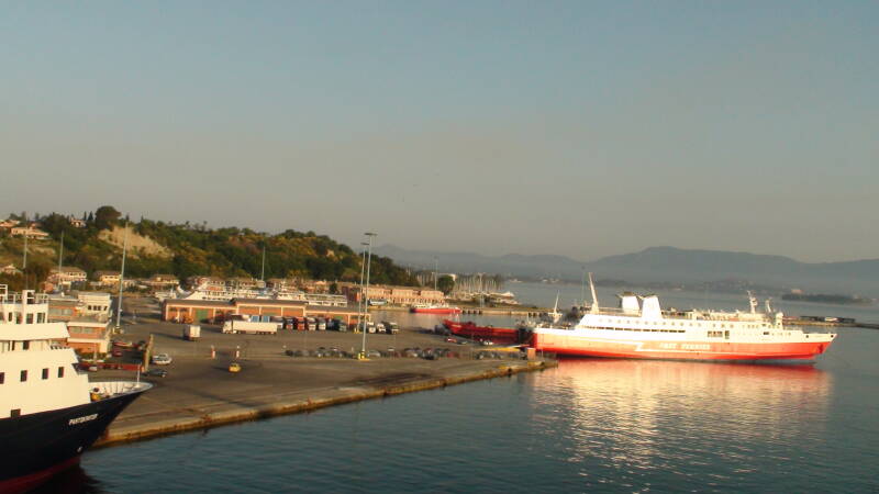 Ontbijt en vertrek naar de boot in Ancona. We hebben gekozen voor Minoan Lines, omdat de prijs goed was (€ 373,50 Ancona – Igoumenitsa en terug Patras – Venetië) en je kunt op deze boten in je camper slapen. Dit is echt ideaal, want je hebt je eigen sanitair en bed. Op de boot is alles schoon en netjes en je hebt er genoeg vermaak. Overdag is zelfs een zwembad aanwezig. De route langs de kust naar Ancona is ook erg mooi om te rijden. Inchecken en inschepen gaat vrij soepel. Slapen op de boot in de camper is ook geen probleem en de volgende morgen vaar je tussen de Albanese kust en Corfu door naar Igoumenitsa.