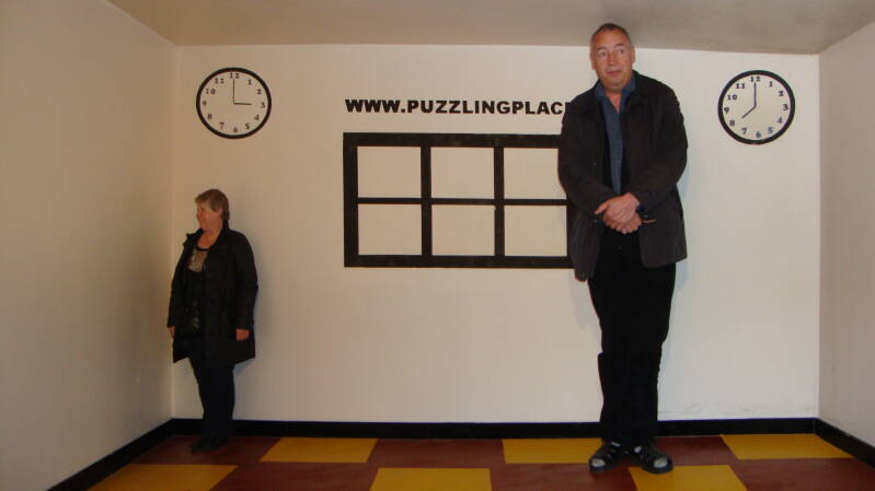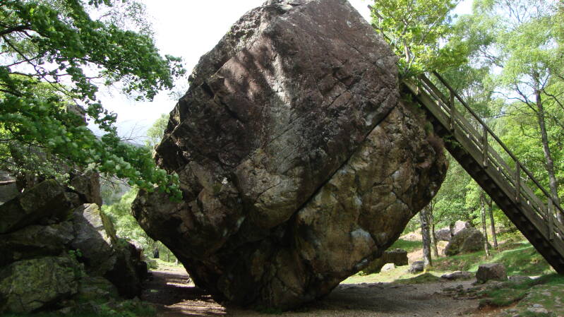 potloodmuseum ter plaatse. Dit zit naast de fabriek waar de eerste potloden ooit, gemaakt werden en nog steeds gemaakt worden. De presentatie was niet bijzonder. Vervolgens naar het puzzelmuseum, dit is zeker een aanrader. Leuke misleidende effecten, je kunt er enkele uren doorbrengen, dus geschikt voor een wat mindere dag. Na enkele consumpties vertrokken naar de Bowder Stone, dit is een enorm rotsblok wat verplaatst is door een gletsjer lang geleden en op één punt staat, zodat het lijkt dat je hem om kunt duwen. Daarna nog even geparkeerd langs Derwent Water en foto’s van dit meer gemaakt.