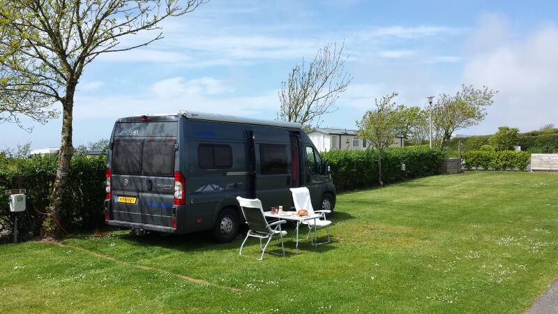 Aangezien we hier prachtig weer hebben en een heerlijke camping vlak bij de zee met wat leuke wandelpaden. We kunnen ons hier wel vermaken, alles is goed geregeld op deze camping dus dat maakt het verblijf zeer aangenaam.