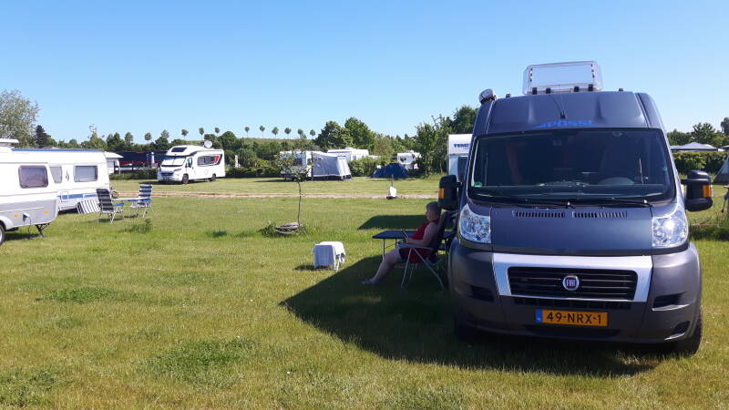 Binnendoor, maar minder rustig dan gisteren. Eerst naar de terminal in Travemünde en een ticket voor de boot naar Malmö gekocht bij Finnlines à € 97.81 en vervolgens naar de camping in Ivendorf gereden, hemelsbreed 500 meter van de terminal. Hier wat gewandeld en lekker van de zon genoten. Morgen tussen 9 en 10 uur bij de boot zijn.