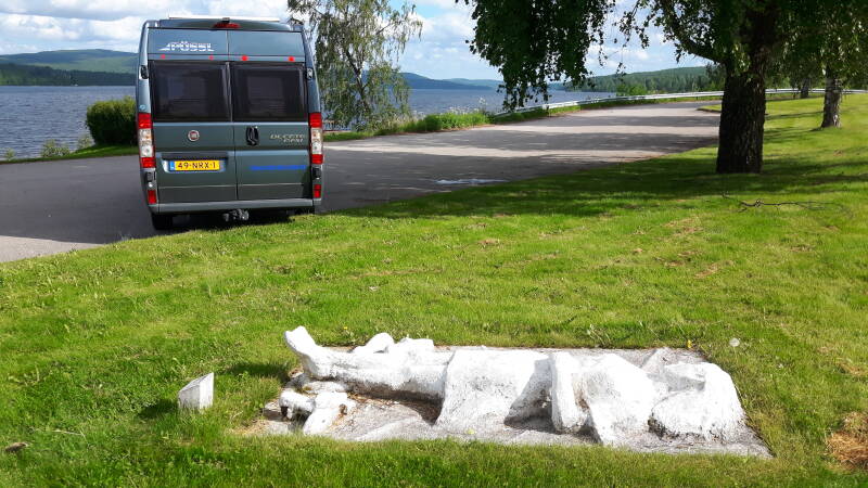 Nadat we verse broodjes gehaald en gegeten hebben zijn we vertrokken naar Kåseberga om daar de Ales Stenar te bekijken. Deze  stenen staan in de vorm van een vikingschip en volgens overlevering is daar het frame gemaakt van een vikingschip en zijn de stenen als ondersteuning neergezet. Hierna verder gereden tot Gunmark nabij Eksjö en op camping: “Mycklafons” gestopt en heerlijk gegeten.