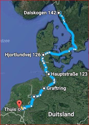 Zondag 18 juni Ribe naar  Hochdonn  N 54.01944  E 9.29667  208 km.