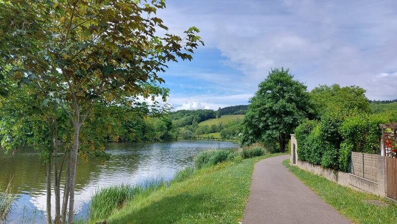Vandaag 27°, dus een mooi plaatsje gezocht om wat langer te blijven. Dit is Monthureux-sur-Saône geworden, rustig dorpje met een mooie camperplaats en vlak bij de bakker. Genoten van de schoolkinderen die met de kano's gingen varen. Wandelingen gemaakt en genoten van het mooie weer. 18 mei. Vanmorgen op tijd gaan lopen want het wordt vandaag 30°. Mooie wandeling met flinke klimmetjes en voor de grootste warmte weer terug. Daarna douchen en de rest van de dag luieren.